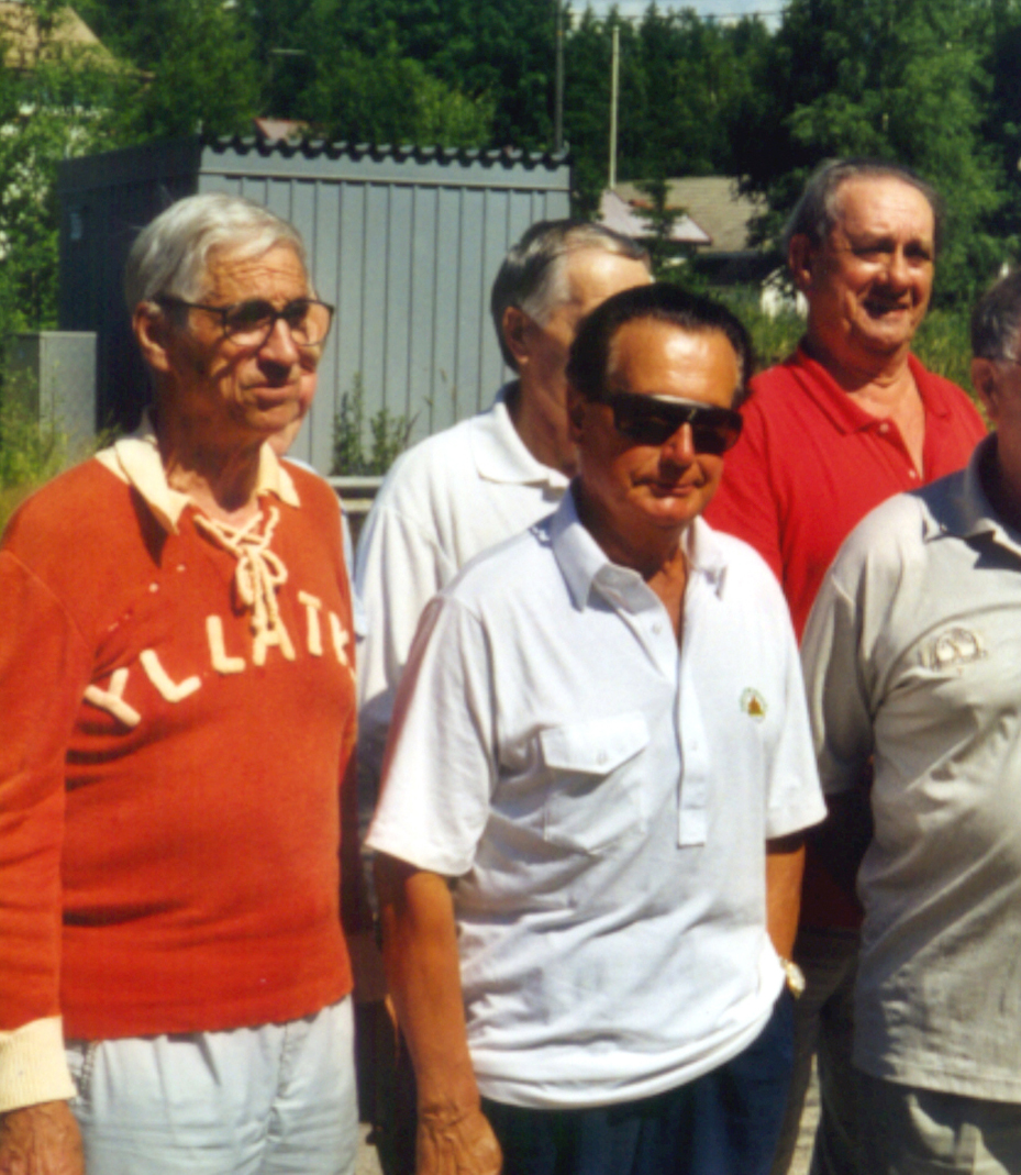 Ypäjällä 7.7.2001 Ypäjän Yllätyksen pelaajien tapaaminen 7.7.2001 kokosi kaikki elossa olevat joukkueessa aikoinaan pelanneet kokoon Ypäjänkylän pirttiin. Eero Vilevaara muiden mukana. Kuvassa Eeron vasemmalla puolella Sakari Kulmala seuran edustusasu päällään (hänen taakseen jää Seppo Valtanen). Eeron oikella puolella naureskelee Risto Haapakoski. Eeron taakse jää Esko Palmolahti. |