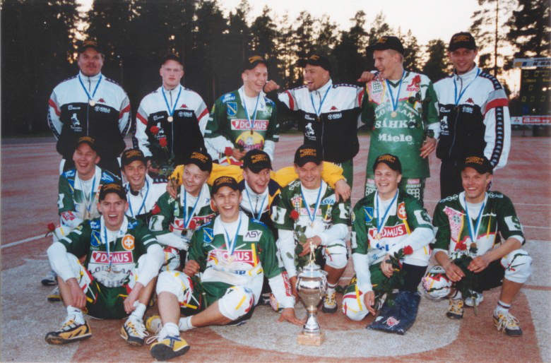 Näin oli tie selvä loppuotteluun. Vastustaja Sotkamon Jymy tarvitsi kolme ottelua Kankaanpäätä vastaan ennen kuin sille avautui paikka loppuotteluun. Finaalin ensimmäinen osaottelu oli Loimaalla ja siitä muodostui erittäin tiukka. Ensimmäisen jakson LP selvitti numeroin 3-2. Kun LP tuli toisen jakson viimeiseen tasoittavaan sisävuoroonsa, johti Sotkamo 2-3. Kahden palon ajotilanteessa Aleksi Mäkelän takakenttälyönti upposi Sotkamon kolmospuolella ja LP tasoitti ja voitti ottelun 1-0. Viikkoa myöhemmin Sotkamossa, oli vastustajan vuoro voittaa. Ensimmäinen jakso päättyi 4-0 Sotkamolle ja toinen jäi tasatulokseen 1-1. Viisi päivää myöhemmin 15. syyskuuta oli ratkaiseva peli Loimaalla. Ensimmäinen jakso oli LP:n juoksuin 5-2. Sotkamo aloitti toisen jakson tekemällä kaksi juoksua. LP kavensi kuitenkin heti perään yhdellä juoksulla ja tuli seuraavassa vuorossa jo tasatilanteeseen. Kun loppuvuoroissa ei enää juoksuja nähty, oli loppuvihellyksen jälkeen vuorossa kultajuhlan aika ja Suomen mestaruusmitalien jako LP:n pelaajille 32 vuoden tauon jälkeen. |